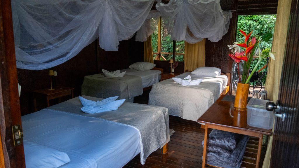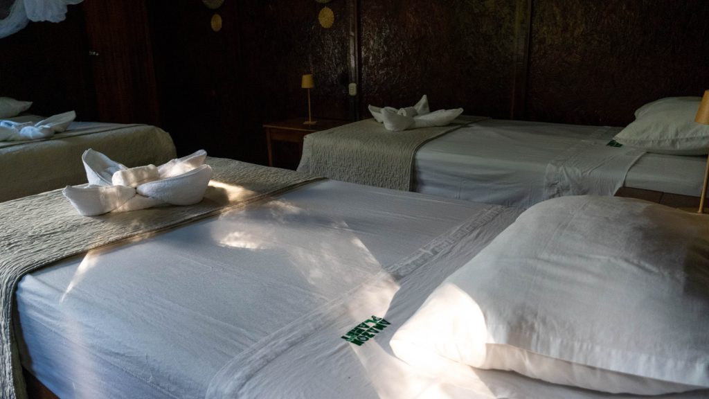 Amazon Planet offers thoughtfully designed wooden cabins that provide privacy, warmth and rest in the heart of the rainforest. Each space features a private bathroom with warm water, natural amenities and details that enhance comfort, from mosquito protection and fresh linens to intimate terraces surrounded by nature.
